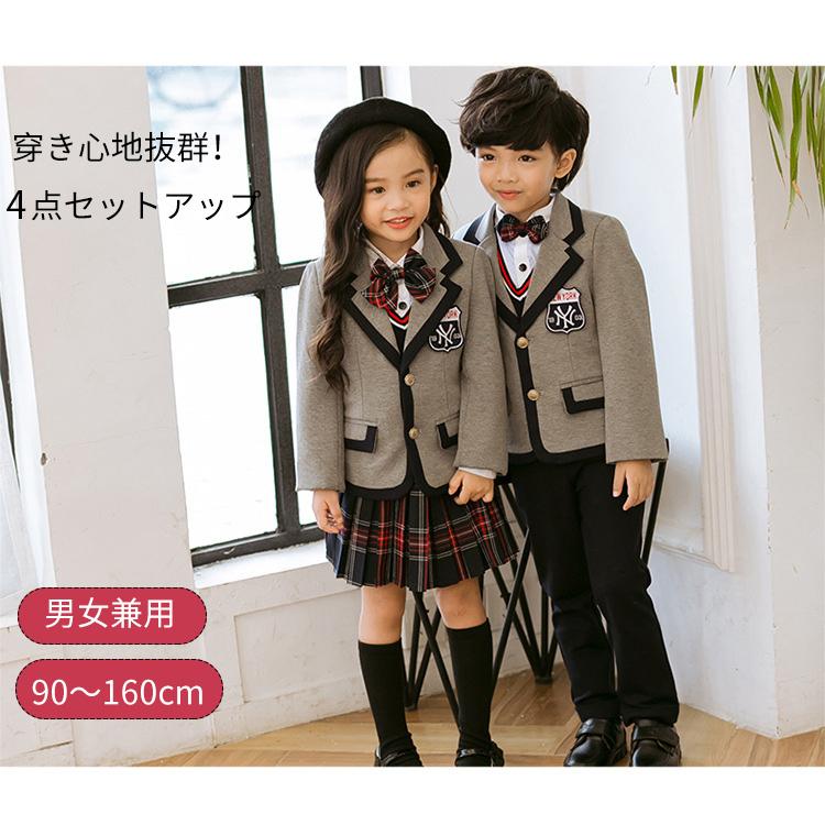 楽天市場 子供 フォーマルスーツ 子供制服 4点セット 学生服 セーラー服 女の子 スカート 男の人 ズボン キッズ セットアップ 変装 長袖 蝶結び ネクタイ クリスマスプレゼント ガールズ 卒業式 入学式 七五三 発表会 卒園式 おしゃれ 韓国子供服 100 110 1 130 140cm